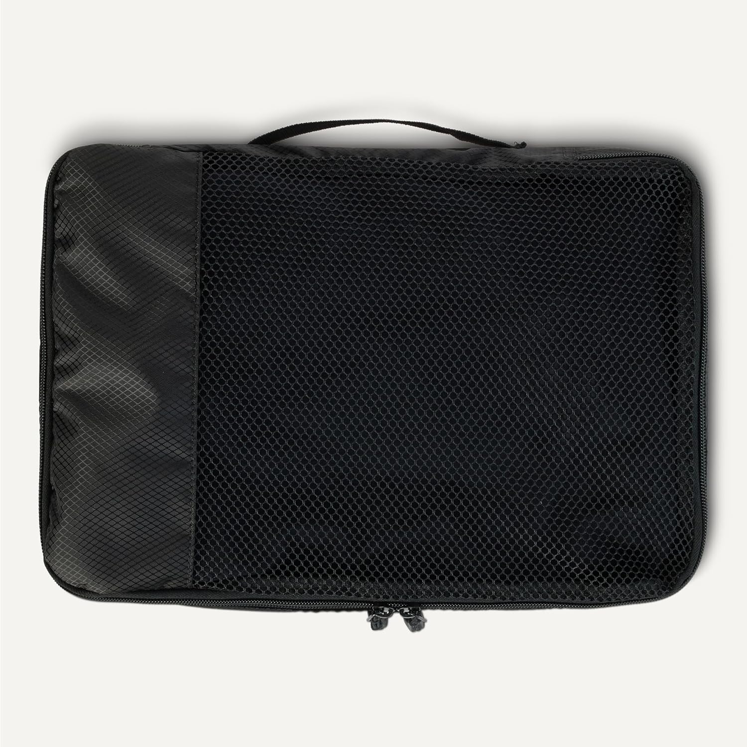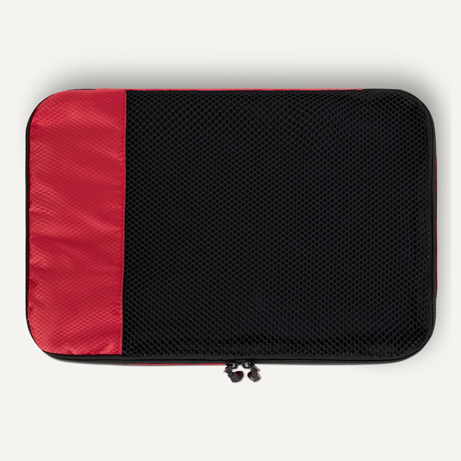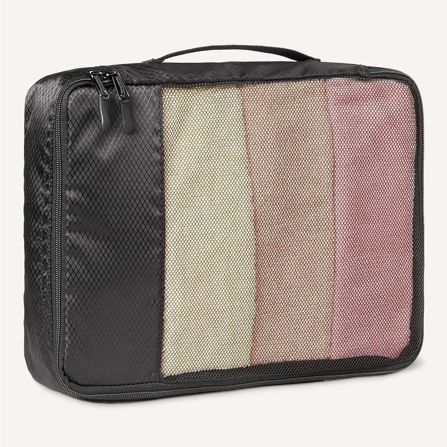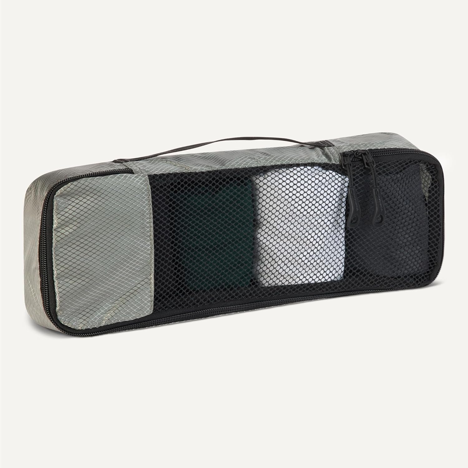 Pack smart with these Amazon Essentials medium packing cubes. This set of 4 features mesh panels for instant visibility, reinforced double zippers for durability, and compact 35.6 × 25.4 × 7.5 cm dimensions that fit seamlessly into suitcases, backpacks, and storage spaces. Organize by clothing type—sweaters, shirts, underwear, socks—and locate items instantly without unpacking. Lightweight polyester construction with sturdy seams handles frequent travel and home storage. Each cube includes a carry handle and is machine washable for convenient maintenance.