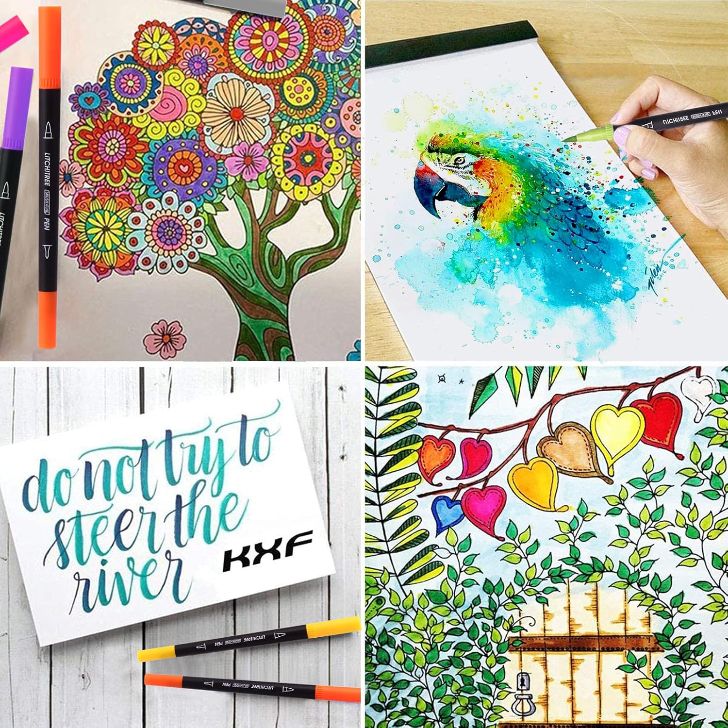 Laconile's 72-piece dual-tip marker set combines fine-point precision with broad brush capabilities for versatile artistic expression. Each pen features a 0.4mm fine tip for detailed work and a 2mm brush tip for sweeping strokes. The water-dispersible, non-toxic ink is safe for children and blends beautifully to create dimensional artwork. Includes a portable storage case with extra nibs and brush tips. Ideal for drawing, sketching, calligraphy, and mixed-media projects. Store with the lid sealed in a cool, dry place for longevity.