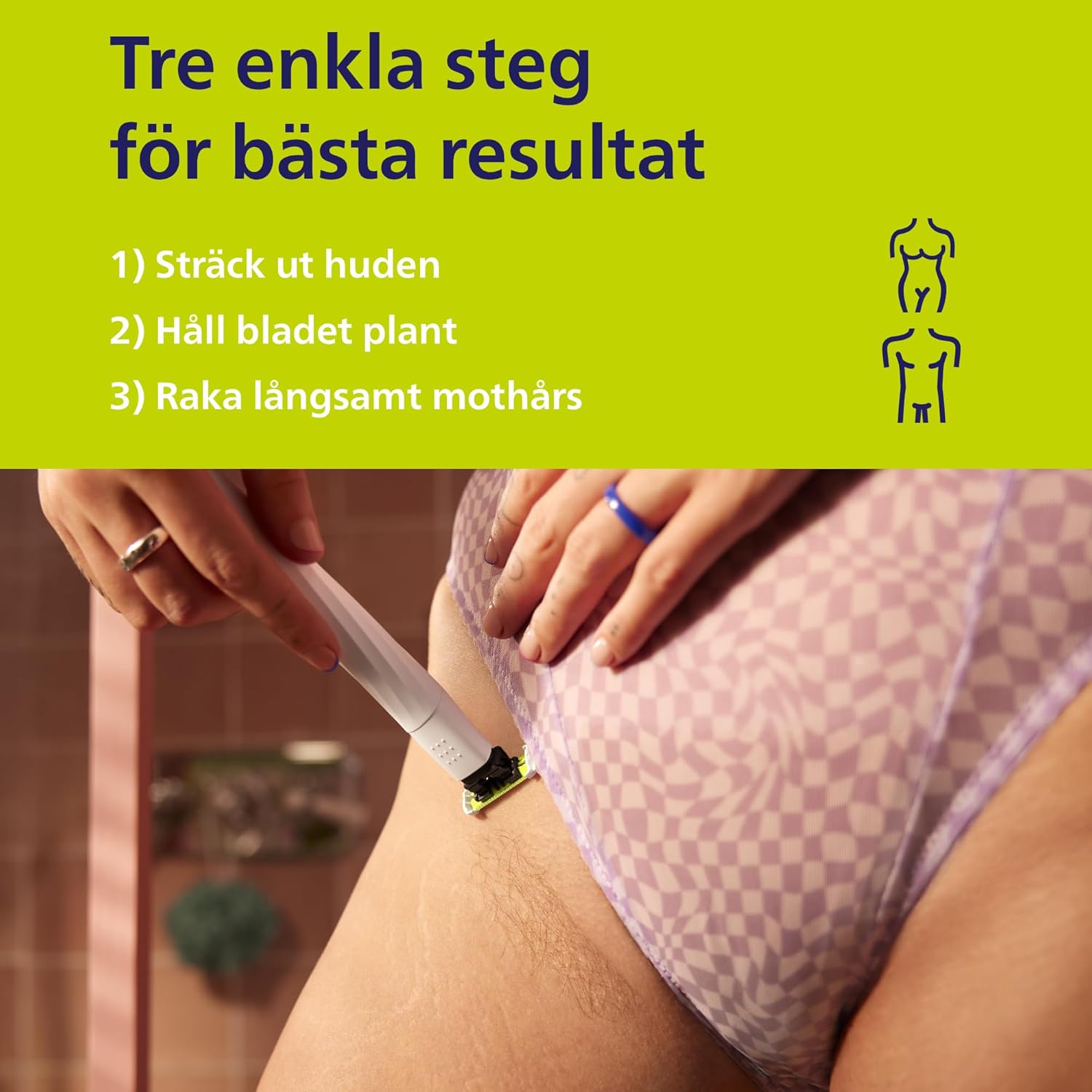 Philips OneBlade Intimate is a specialized grooming device engineered for sensitive areas. Its fast-moving cutter (100 strokes per second) handles all hair lengths, while the triple-protection SkinProtect blade system—featuring rounded edges and tips—minimizes irritation and razor burn. The attachable 3mm comb enables precise trimming in any direction. Fully waterproof (IPX7), it works wet or dry, with or without foam. Durable stainless steel blades last up to 4 months with regular use. Rechargeable battery provides 30 minutes of runtime per charge.