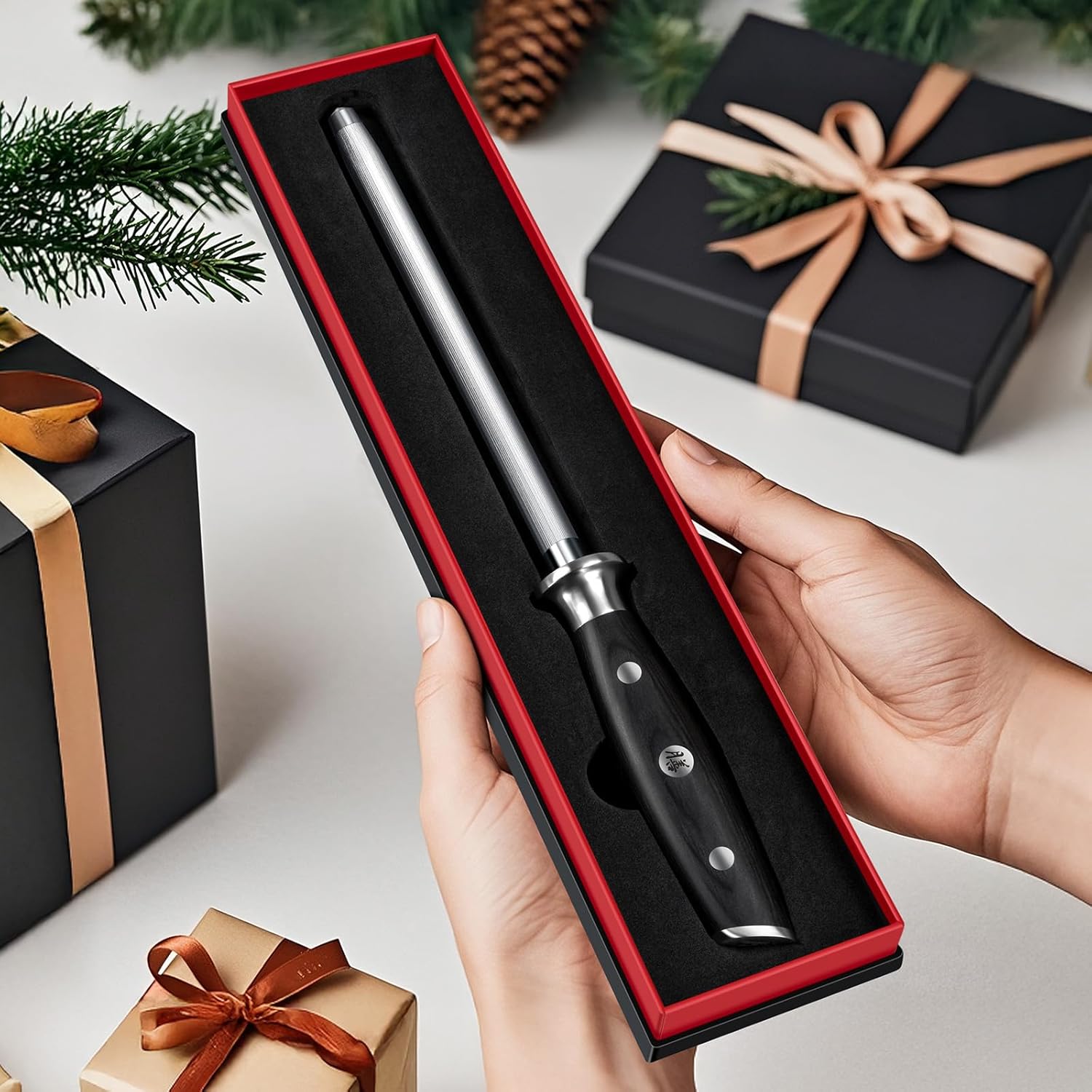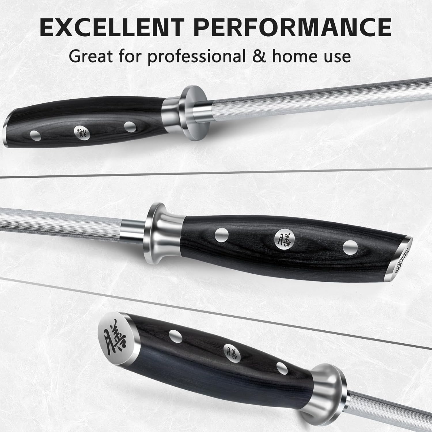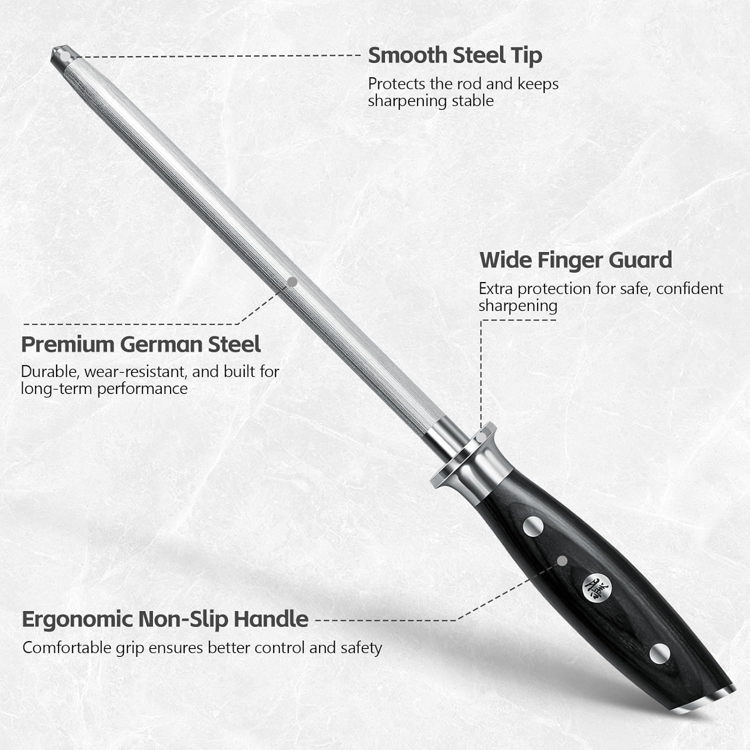 Three essential kitchen knives in one professional set. The 20cm chef's knife handles meat and vegetables, the 15cm utility knife tackles everyday tasks, and the 9.5cm fruit knife perfects detail work. German stainless steel blades with 55-57 HRC hardness deliver lasting sharpness and corrosion resistance. Ergonomic Pakkawood handles with full tang construction ensure comfort and durability. Ideal for home cooks and a thoughtful gift.