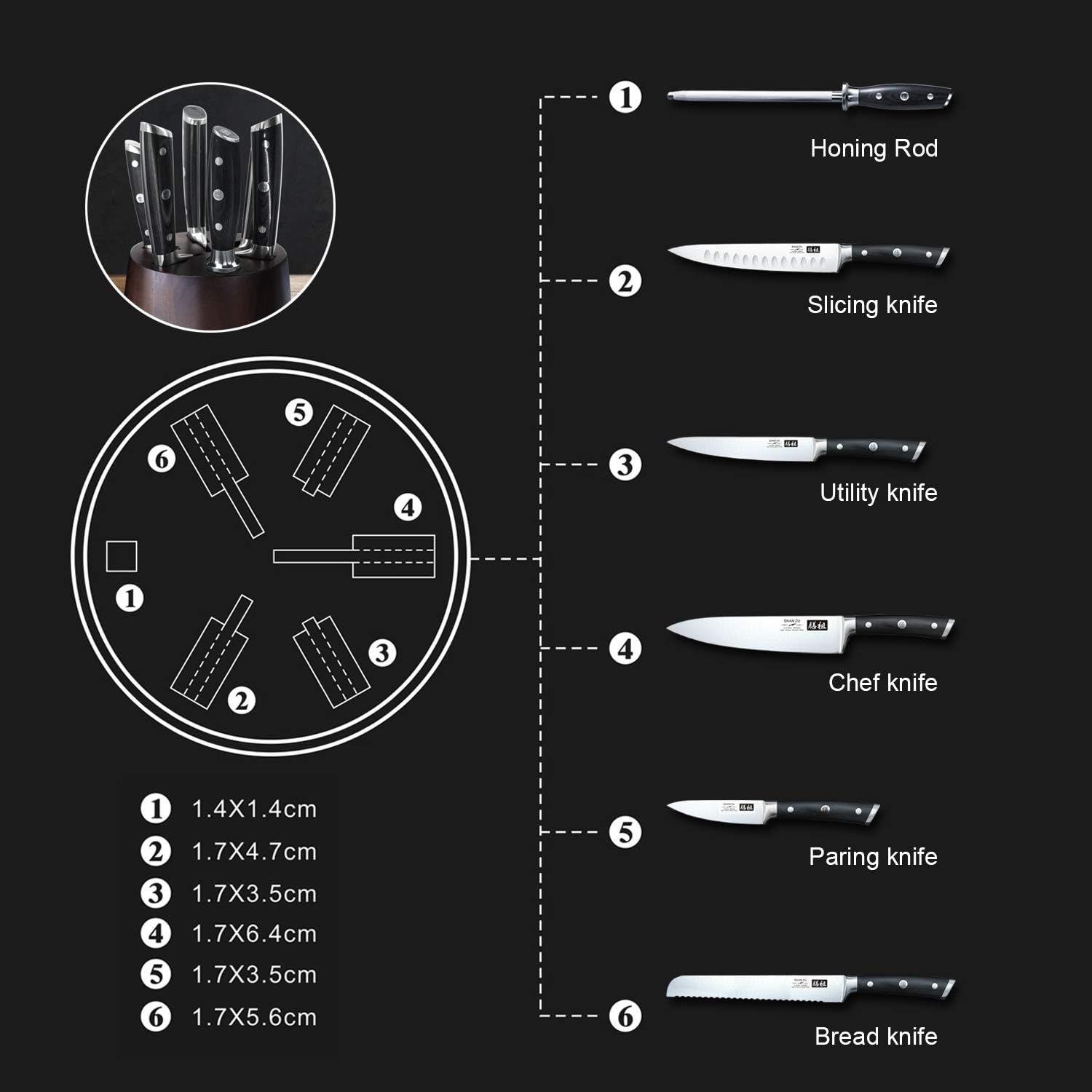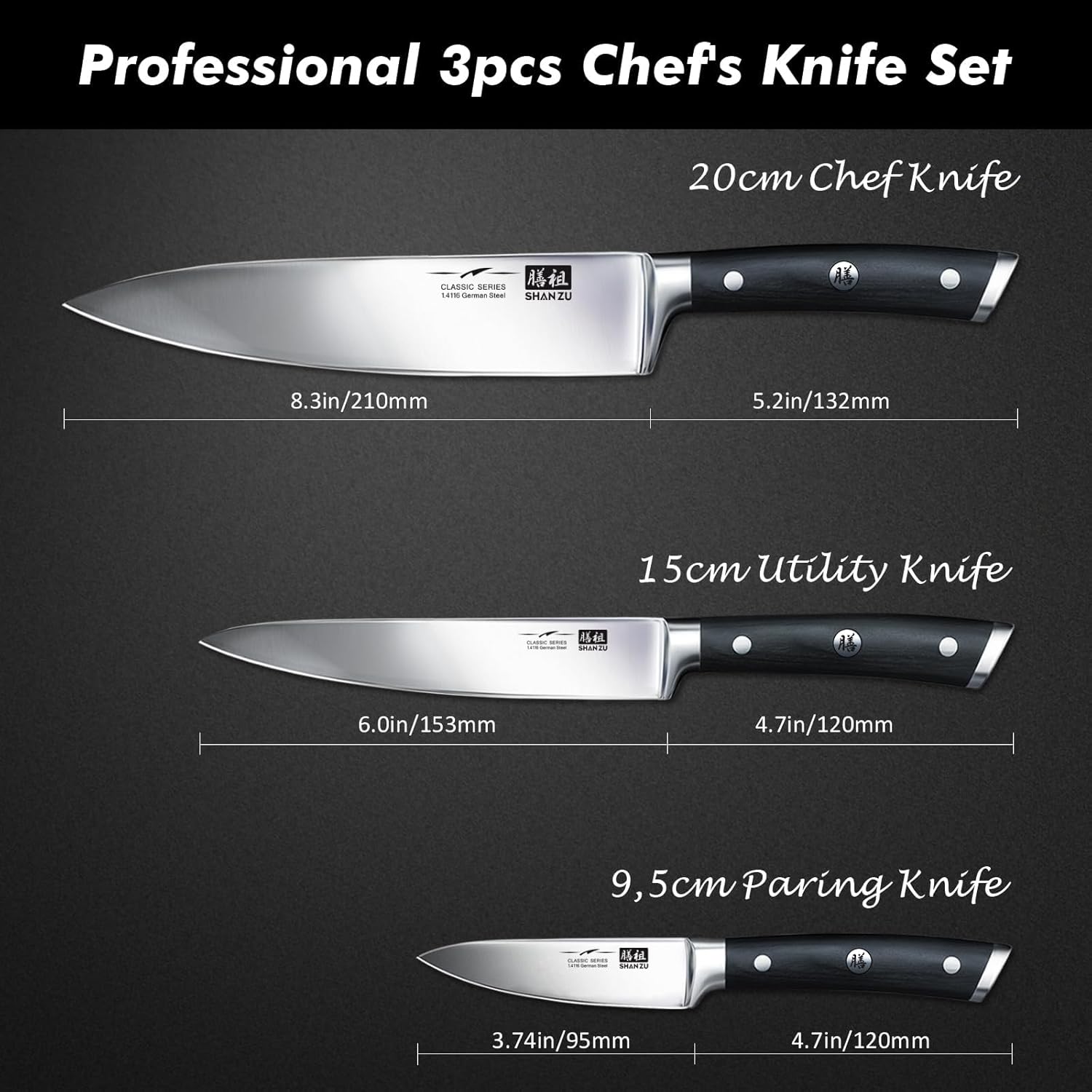 SHAN ZU Kitchen Knives 3 pieces (200mm, 153mm, 95mm)