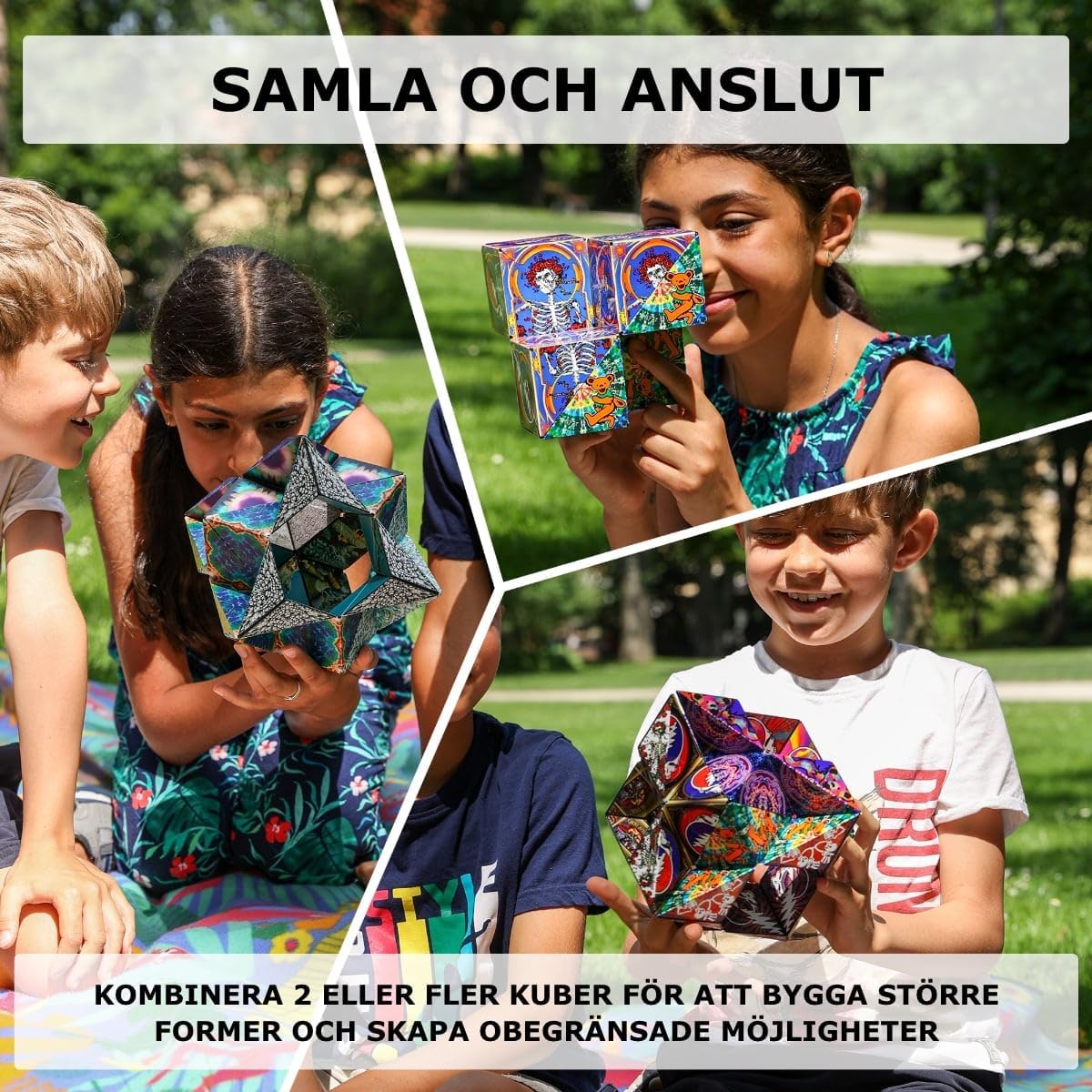 SHASHIBO Shape Changing Box transforms into over 70 mesmerizing forms with 36 rare-earth magnets and innovative patented design. This award-winning fidget cube features premium injection-molded plastic with artistic patterns and a kaleidoscope effect. Fits comfortably in hand for hours of sensory stimulation. Collect multiple boxes to build larger structures. Perfect for stress relief, motor skill development, and creative play across all ages. Made in the USA and Germany with sustainable quality.