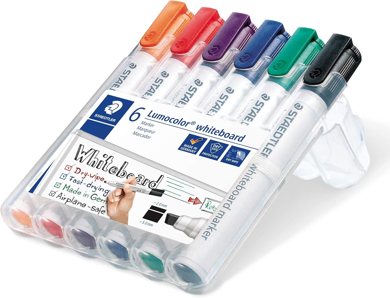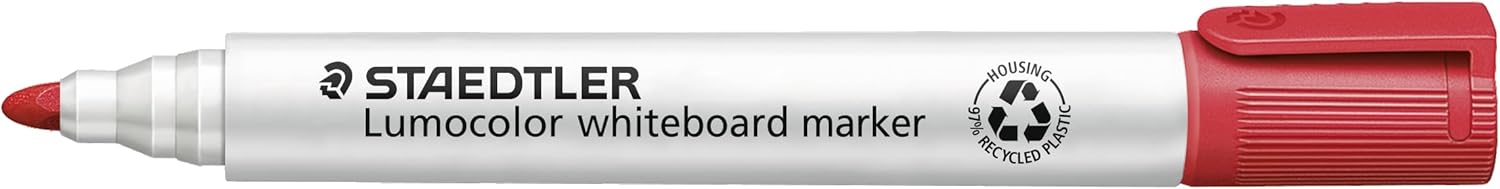 STAEDTLER Lumocolor whiteboard markers deliver reliable performance for professional and educational use. These dry-erase markers wipe cleanly from whiteboards, glass, and porcelain surfaces without smudging.